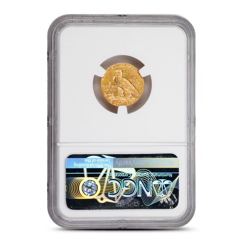 The Indian Quarter Eagle was the final design for the Pre-33 $2.50 Gold denomination. Introduced in 1908, the coins featured the first-ever incuse design strikes in American coinage history. The coins were issued annually from 19081 to 1915, with subsequent production from 1925 to 1929.