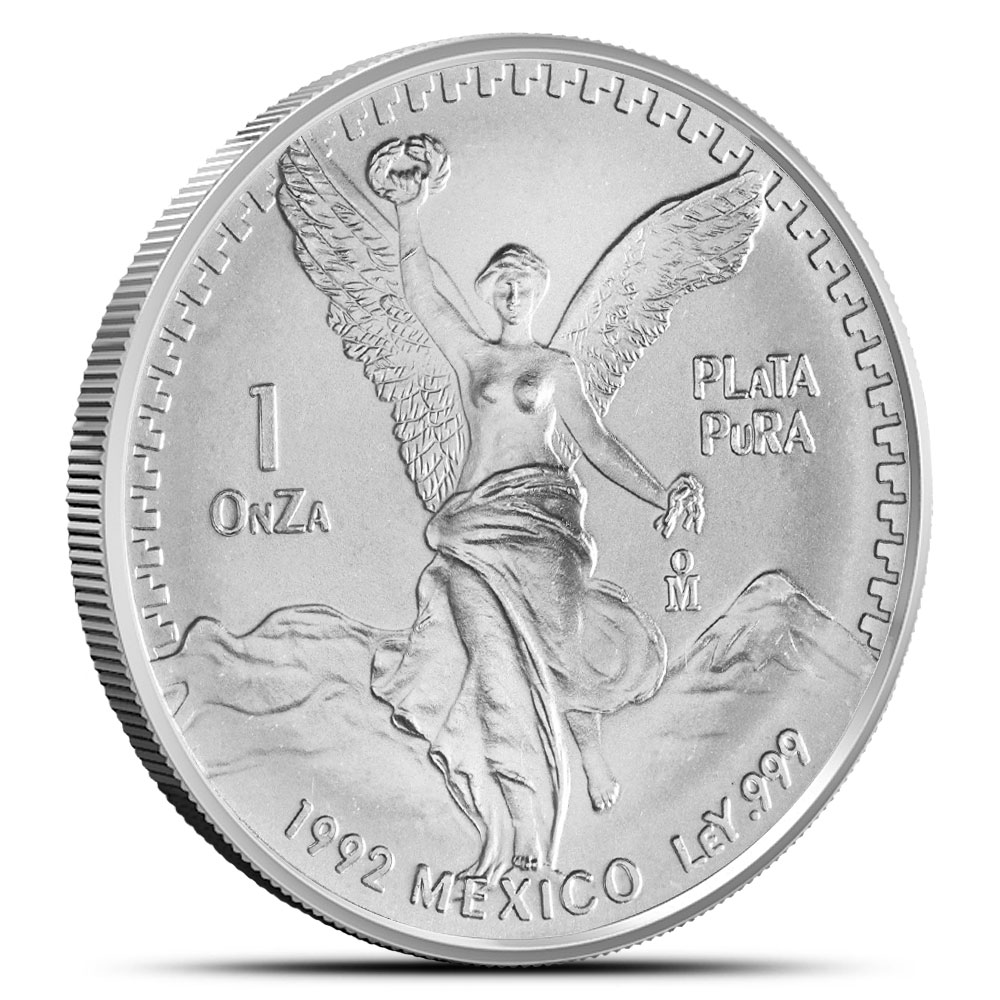 The Mexican Silver Libertad Coin was first issued by the Mexican Mint in 1982, with annual production of the 1 oz silver coin continuing without interruption since that time. The 1 oz Silver Libertad is the only weight in the silver series to have been struck each year since 1982. Coins issued prior to 1996 feature a different reverse design, while those issued prior to 2000 have a different obverse design. Today, 1992 1 oz Mexican Silver Libertad Coins are available at JM Bullion.