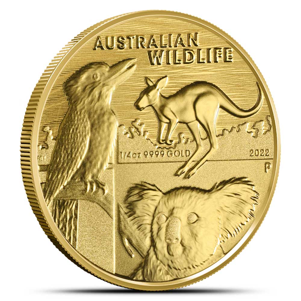 The 2022 Australian Wildlife release from the Perth Mint was a tribute to three of the Australian continent’s most iconic native species: the koala, kookaburra, and kangaroo. The coins issued in this commemorative collection were produced with a limited mintage and showcased a unified reverse design highlighting the distinctive charm and natural grace of these beloved animals. Today, 2022 1/4 oz Australian Wildlife Gold Coins are available from JM Bullion.