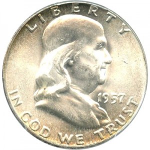 The 1957 edition of the Franklin Half Dollar carries a very reasonable premium. A 1957 mint year half dollar in very fine condition may be bought or sold for about $13. The same coin in extremely fine condition may be bought or sold for about $14. Premiums can potentially go higher from here depending on grade and condition.