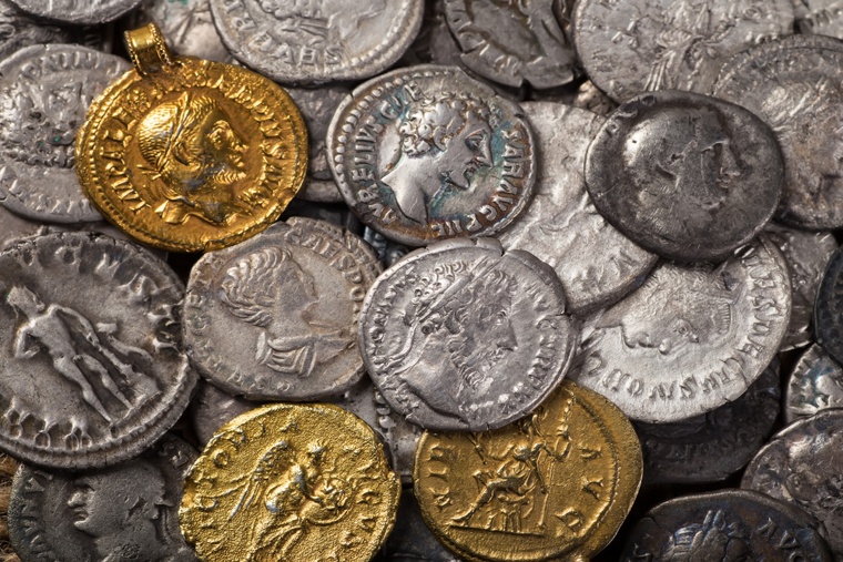 The Romans struck coins in gold, silver, bronze, and copper, creating nearly a dozen denominations over the centuries.